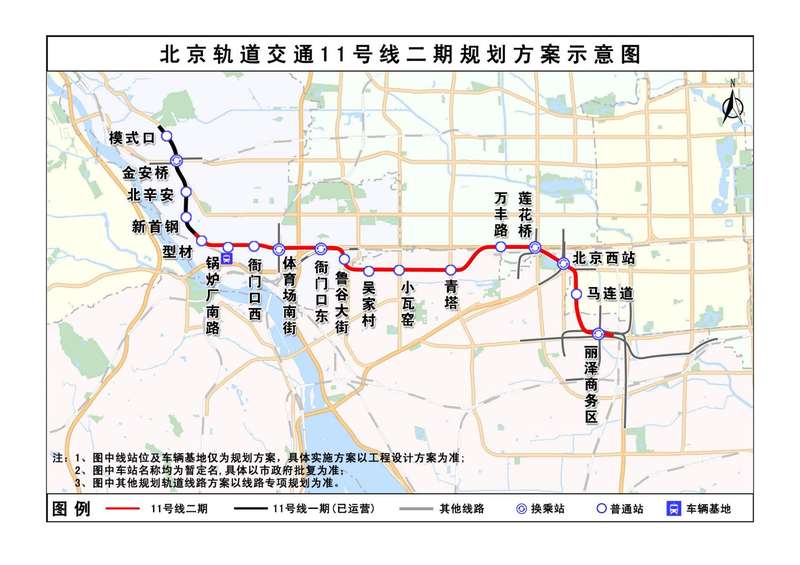 根据北京市基础设施投资有限公司会同沿线相关区政府共同组织编制的《北京轨道交通11号线二期线路一体化规划方案》披露:北京轨道交通11号线二期是国家发展和改革委员会批复的北京市轨道交通第三期建设规划项目之一,是既有11号线一期工程向东的延伸线,途经石景山、丰台、海淀、西城四个行政区。项目的建设可改善沿线地区对外出行条件,提供快速、大容量、公交化的轨道交通服务。